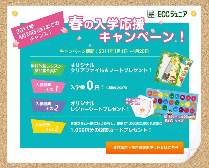 キャンペーン情報ECCジュニアではただいま春の入学応援キャンペーンを開催しています。