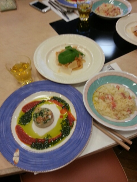 料理教室行って来ました 日記 2013.01.30 ヴィラサントリーニの料理長が講師のお料理教室に行って来ました ガレット、リゾット、パスタを作ったよ 私は料理苦手なので、主にみじん切り担当 でもリゾットは簡単だったので、仕上げまでしました 料理長のサービスで出してくれたデザートのヨーグルトの美味しかったこと 素敵なランチタイムでした